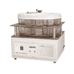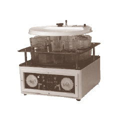 AUTOMATIC SLIDE STAINING MACHINE (12 STATIONS) With 3 twelve staining troughs (one having inlet/outlet) one slide carrier six one hour calibrated timing discs and the plier for programming timing disc etc and a dust cover MSS-E12: Similar to model MSS-M12, but the instrument is micro-processor based and operated through a feather touch keyboard with digital display for adjusting the time sequence.